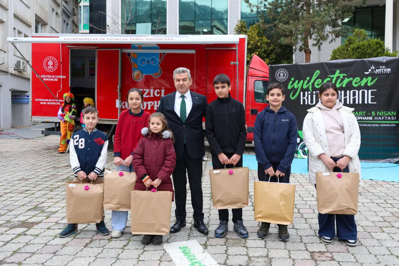 Artvin’de Kütüphaneler Haftası etkinlikleri, Milli İrade Meydanı’nda gerçekleştirilen programla kutlandı. Artvin Valiliği koordinasyonunda, İl Kültür ve Turizm Müdürlüğü tarafından “İyileştiren Kütüphaneler” temasıyla düzenlenen etkinlikte, Vali Dr. Turan Ergün çocuklarla bir araya geldi.