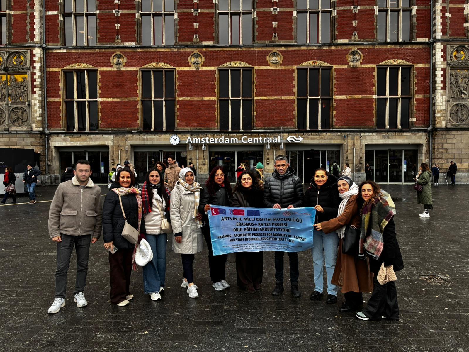 Erasmus+ kapsamında yürütülen 2025-1-TR01-KA121-SCH-000327412 No’lu Okul Eğitimi Akreditasyon Projesi çerçevesinde 10 öğretmen, işbaşı eğitim faaliyeti için Amsterdam’da bulunuyor.