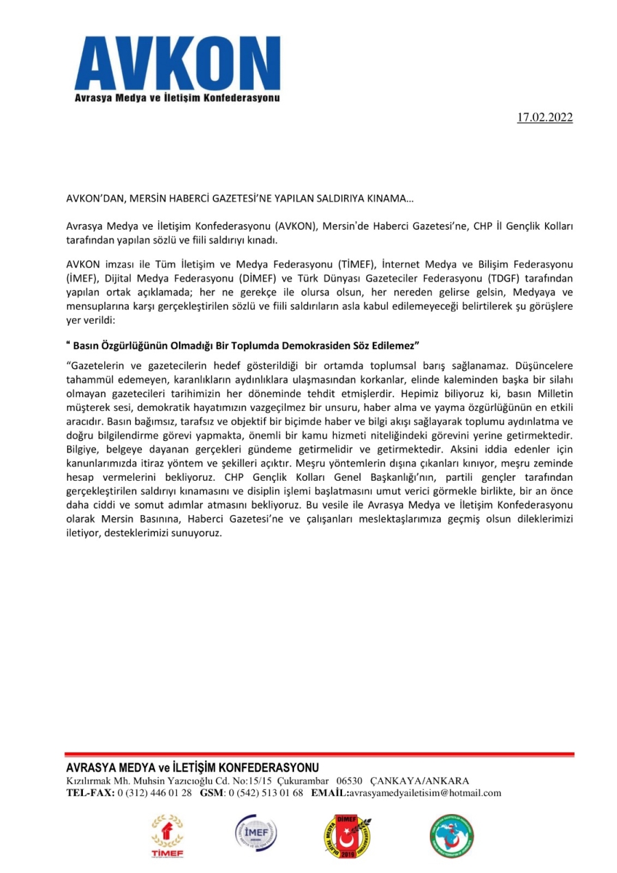 AVKON imzası ile Tüm İletişim ve Medya Federasyonu (TİMEF), İnternet Medya ve Bilişim Federasyonu (İMEF), Dijital Medya Federasyonu (DİMEF) ve Türk Dünyası Gazeteciler Federasyonu (TDGF) tarafından yapılan ortak açıklamada; her ne gerekçe ile olursa olsun, her nereden gelirse gelsin, hiçbir cinayetin meşru sayılamayacağı ve hiçbir bir gazetecinin öldürülerek susturulmasının asla kabul edilemeyeceği belirtilerek şu görüşlere yer verildi: