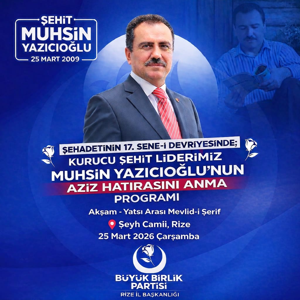 Büyük Birlik Partisi (BBP) Rize İl Başkanlığı tarafından organize edilecek programda, Yazıcıoğlu’nun aziz hatırasının dualarla yad edileceği belirtildi. İl Başkanı Özçelik, yaptığı açıklamada tüm vatandaşları programa davet ederek birlik ve beraberlik vurgusu yaptı.
