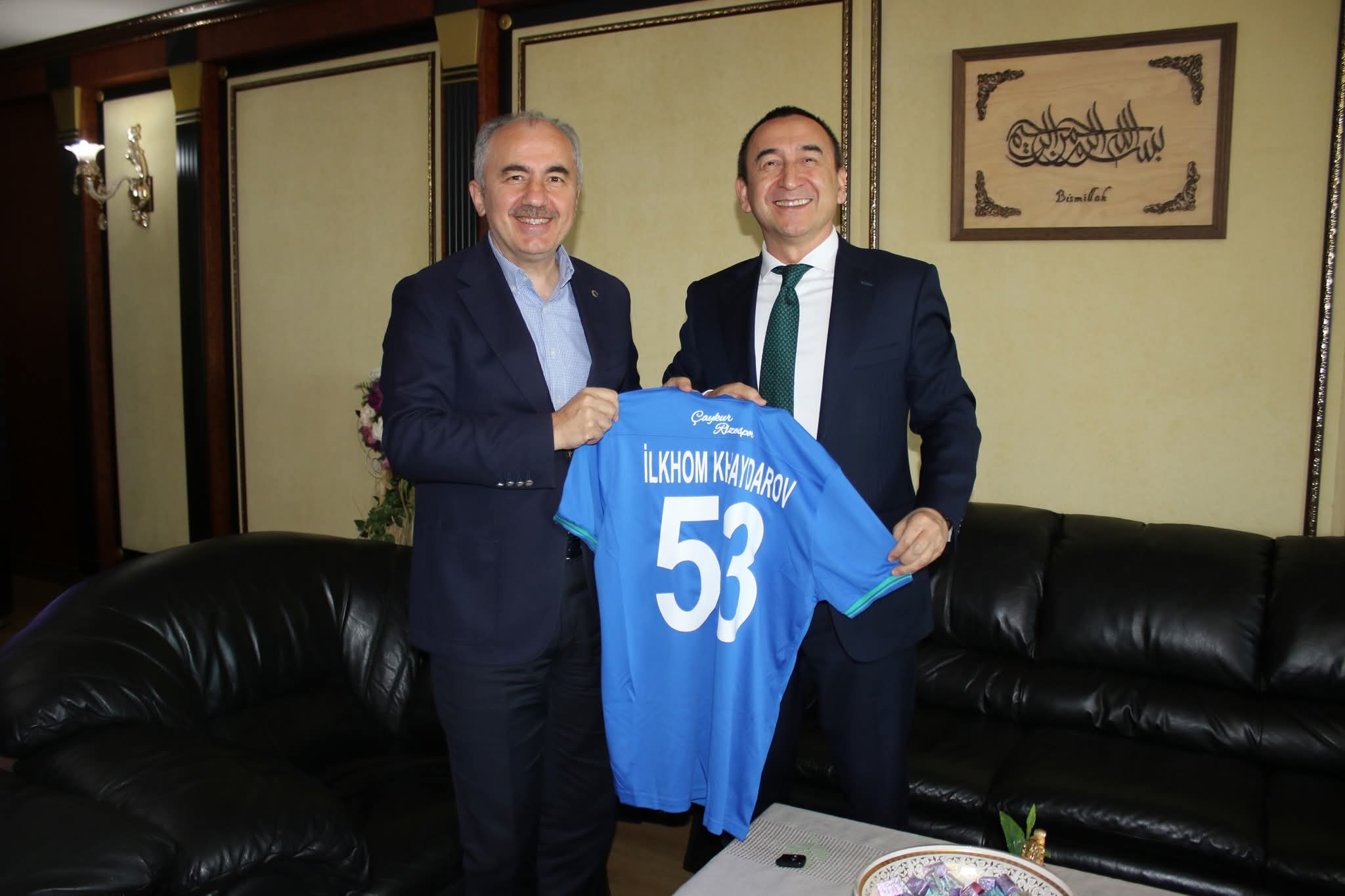 Karşılıklı hediye takdimi ve hatıra fotoğrafı çekimiyle son bulan ziyarette Başkan Rahmi Metin, Büyükelçi İlkhom Khaydarov’a üzerinde ismi yazılı Rizespor forması ve Rize Çay’ı hediye etti.