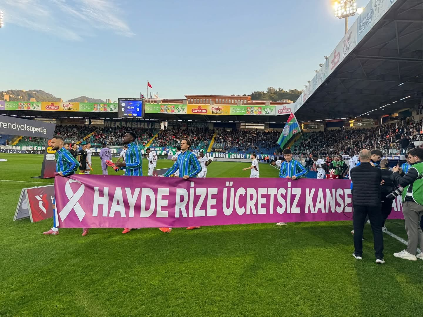 Rize il sağlık müdürlüğü tarafından “Farkındalık Ayı” etkinlikleri kapsamında Çaykur Rizespor-Trabzonspor takımları süper lig futbol müsabakasına “Hayde Rize Ücretsiz Kanser Taraman İçin Keteme Gel” pankartı ile çıkarak, farkındalık oluşturdu.