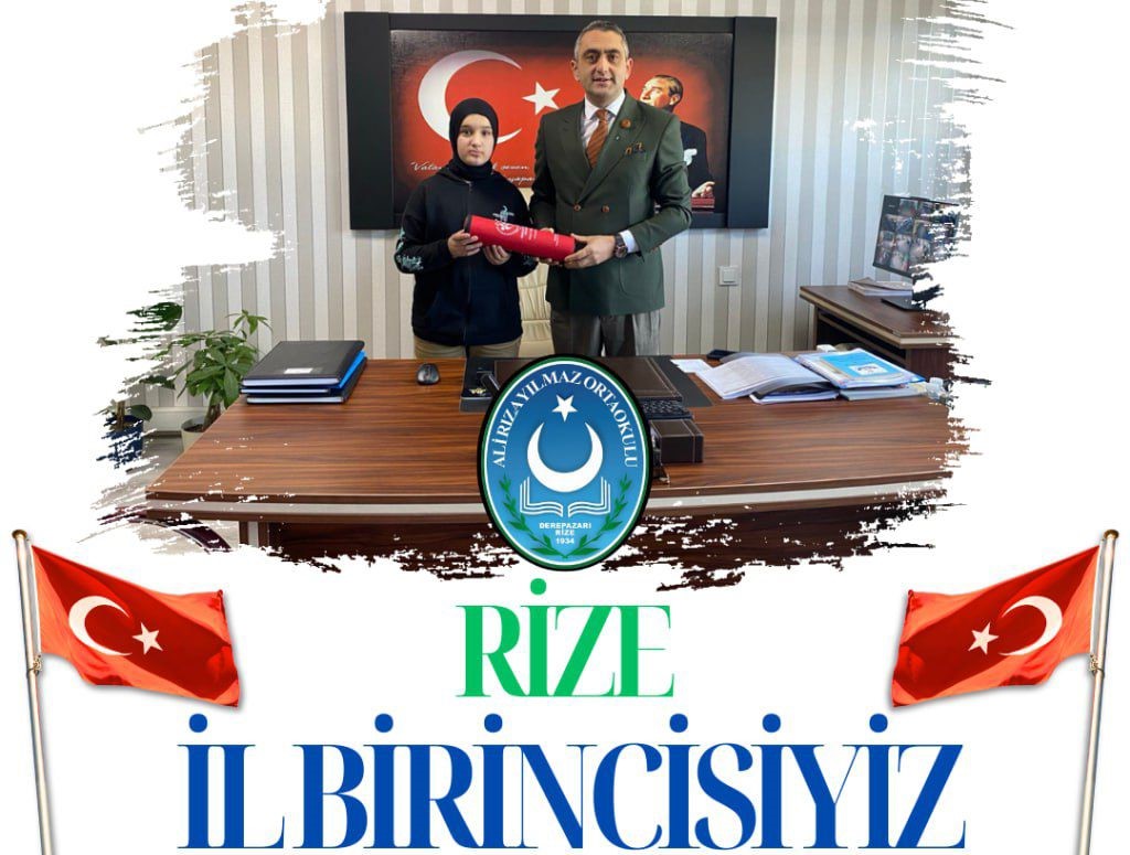 Rize Derepazarı Ali Rıza Yılmaz Ortaokulu öğrencisi Kübra Yağcı İl Milli Eğitim Müdürlüğünün hazırladığı Okulumuz’ ’dilimizin zenginlikleri Projesi/Cümle -Afiş oluşturma yarışmasında Rize İl 1.oldu.