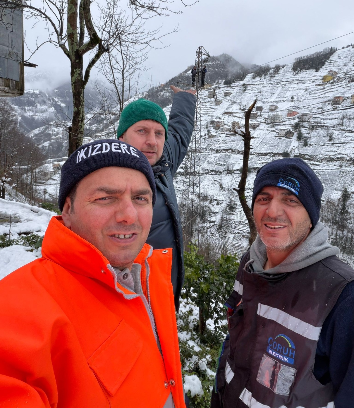 İkizdere ÇORUH Enerji Şefliğinde bulunan bakım arıza ekibi hatlardaki arızalarda 15 metre yükseklikteki demir direklere çıkarak çalışıyor. Kar yağışı altında vatandaşı karanlıkta bırakmamak için yüksekte enerji iletim hatları arızasını gideren ekibinin çalışması vatandaşları memnun ediyor. Kar yağarken Güneyce köyündeki arızayı zamanında gideren arıza ekibine teşekkür eden Muhtar Yücel Yavuz’’ kar ve soğuk havaya rağmen köyümün karanlıkta kalmaması için yüksek direklere çıkan ekibi tebrik ediyorum, Allah razı olsun’’ dedi.