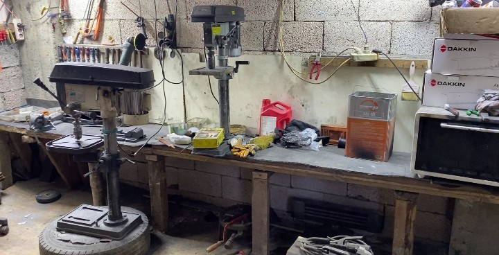 Matkap, boya fırını, mengene, spiral makinesi gibi atölye ekipmanları,