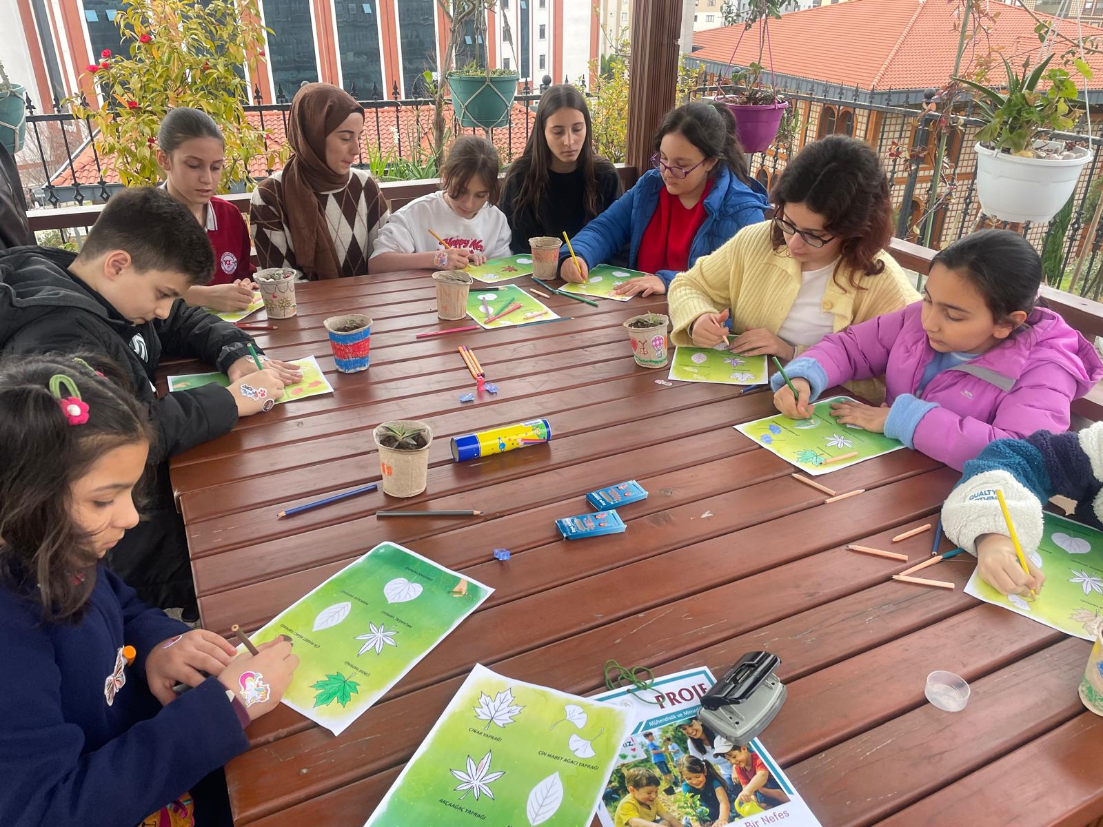Proje yürütücülüğünü Hande Avcı, proje danışmanlığını Prof. Dr. Ömer Lütfü Çorbacı’nın yaptığı etkinlik, çocuklara ağaçların ekosistem için önemi ve fidan dikiminin teknikleri hakkında ön bilgilendirme ile başladı. Ardından çocuklar, farklı ağaç türlerine ait yaprak formlarını boyayarak hangi ağacın hangi yaprağa sahip olduğunu öğrendiler. Bu şekilde, çocuklar, isimlerini duydukları ağaçların yaprak şekillerini görsel hafızalarına kaydedettiler.