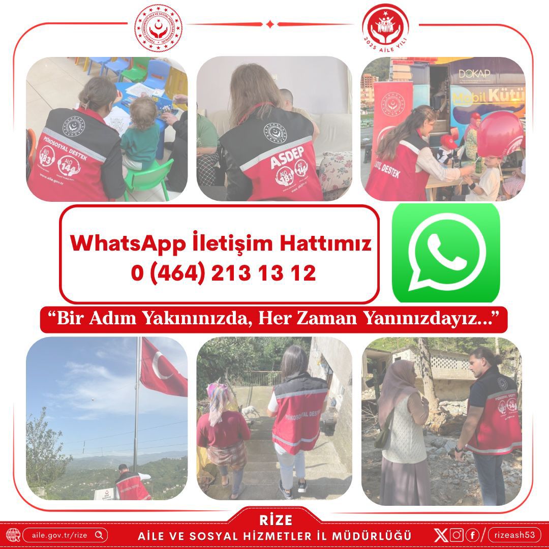 Rize Aile ve Sosyal Hizmetler İl Müdürlüğü, vatandaşların kurumla daha hızlı, kolay ve doğrudan iletişim kurabilmesi amacıyla WhatsApp İletişim Hattı’nı hizmete açtı.