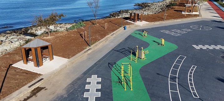 Sahil boyunca bisiklet ve yürüyüş yolu ile açık hava spor aletlerinin bulunduğu alan, vatandaşlara hem spor hem de dinlenme imkânı sunuyor.
