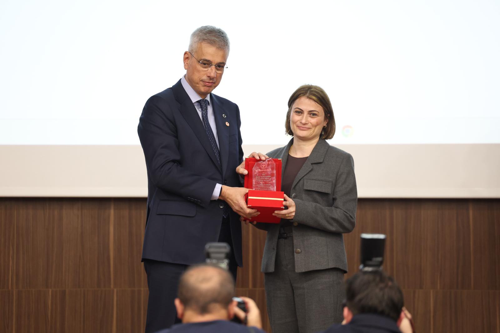 Sağlık Bakanı Prof. Dr. Kemal Memişoğlu tarafından, başarılı çalışmaları dolayısıyla Rize Eğitim ve Araştırma Hastanesi Organ Bağış Koordinatörü Ayla İnce’ye plaket takdim edilerek tebrik edildi.