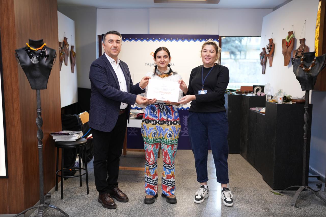 Rize İl Kültür ve Turizm Müdürü Alper Avluk ve Kültür ve Turizm Bakanlığı Yaşayan Miras ve Kültürel Etkinlikler Genel Müdürlüğü Halk Kültürü Dairesi Başkanı Pervin Oymak, stant ve sergileri gezerek sanatçılarla bir araya geldi ve katılımlarından dolayı kendilerine katılım belgelerini takdim etti.