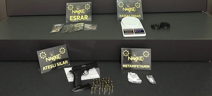 Yapılan teknik ve fiziki takiplerin ardından belirlenen adreslere gerçekleştirilen eş zamanlı baskınlarda şüphelilerin ikametlerinde, araçlarında ve üzerlerinde yapılan aramalarda çeşitli miktarlarda uyuşturucu madde ve suç unsuru materyaller ele geçirildi.