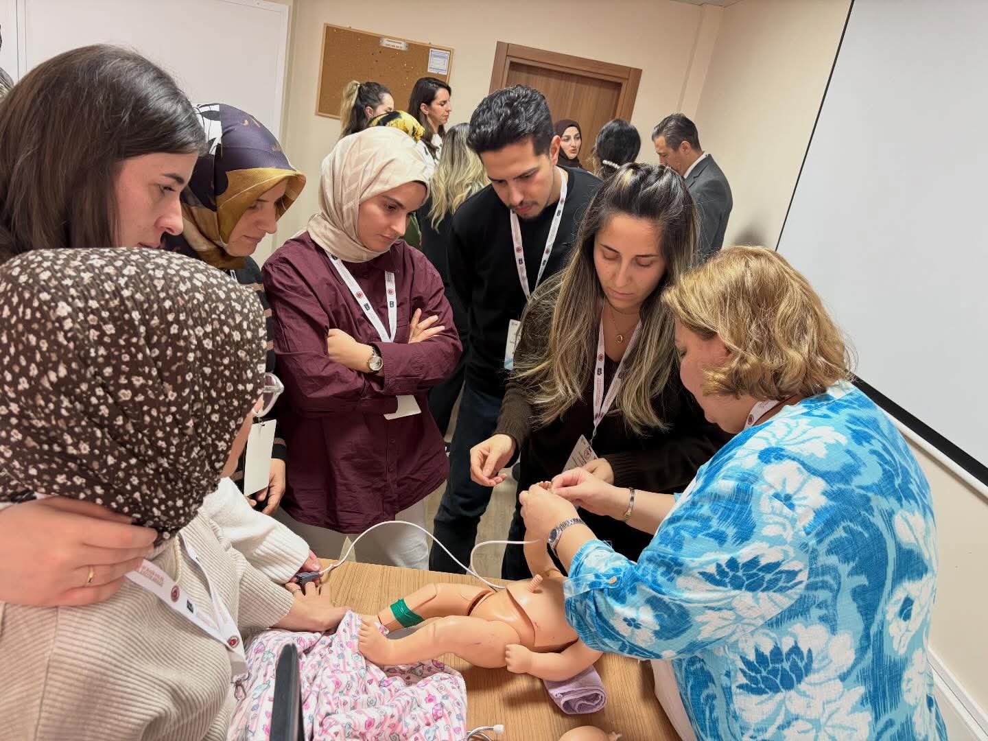 Kamu ve özel hastanelerde görev yapan uzman hekim, hekim, acil tıp teknisyeni, ebe ve hemşirelerden oluşan 49 sağlık çalışanı, doğum sonrasındaki kritik ilk dakikalarda uygulanacak müdahalelere yönelik hazırlanan eğitime katıldı. Program, yenidoğan bebeğe temas eden tüm sağlık personelinin bilgi ve becerilerini güçlendirmeyi amaçladı.