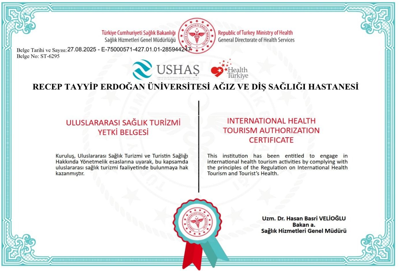 Sağlık Bakanlığı’nın belirlediği yetkinlik kriterlerini yerine getiren ve kapsamlı incelemelerden başarıyla geçen hastane, bu belgeyle birlikte uluslararası standartlarda hasta kabul edebilecek. Böylece yabancı hastalara güvenli, kaliteli ve modern diş sağlığı hizmeti sunulması hedefleniyor.