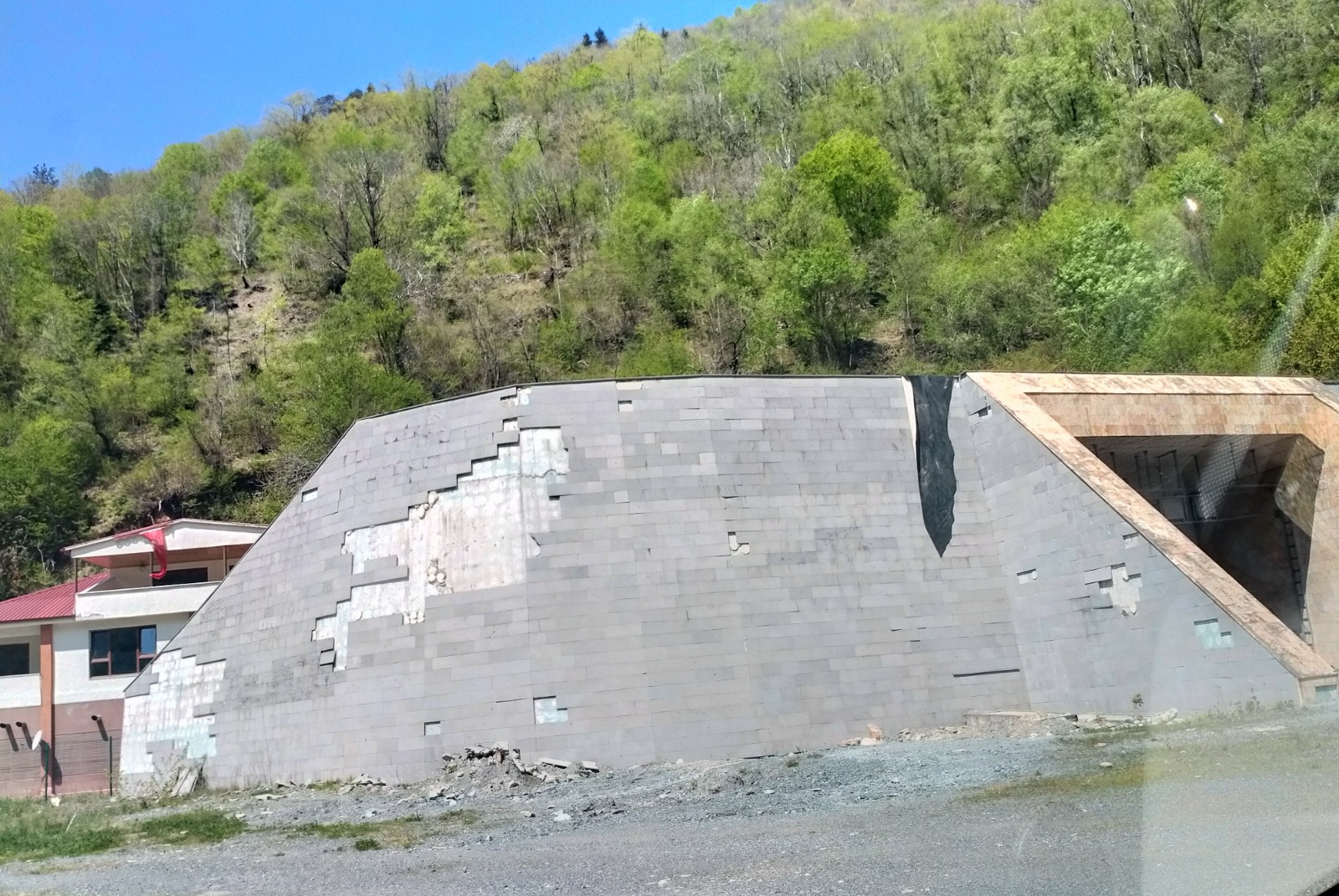İKİZDERE-Rize- İkizdere karayolunda bulunan Güneyce Tüneli giriş ve çıkışlarında dekor amaçlı yapıldığı görülen kaplama taşların koparak düşmesi yoldan geçen vatandaşların tepkisini çekiyor.