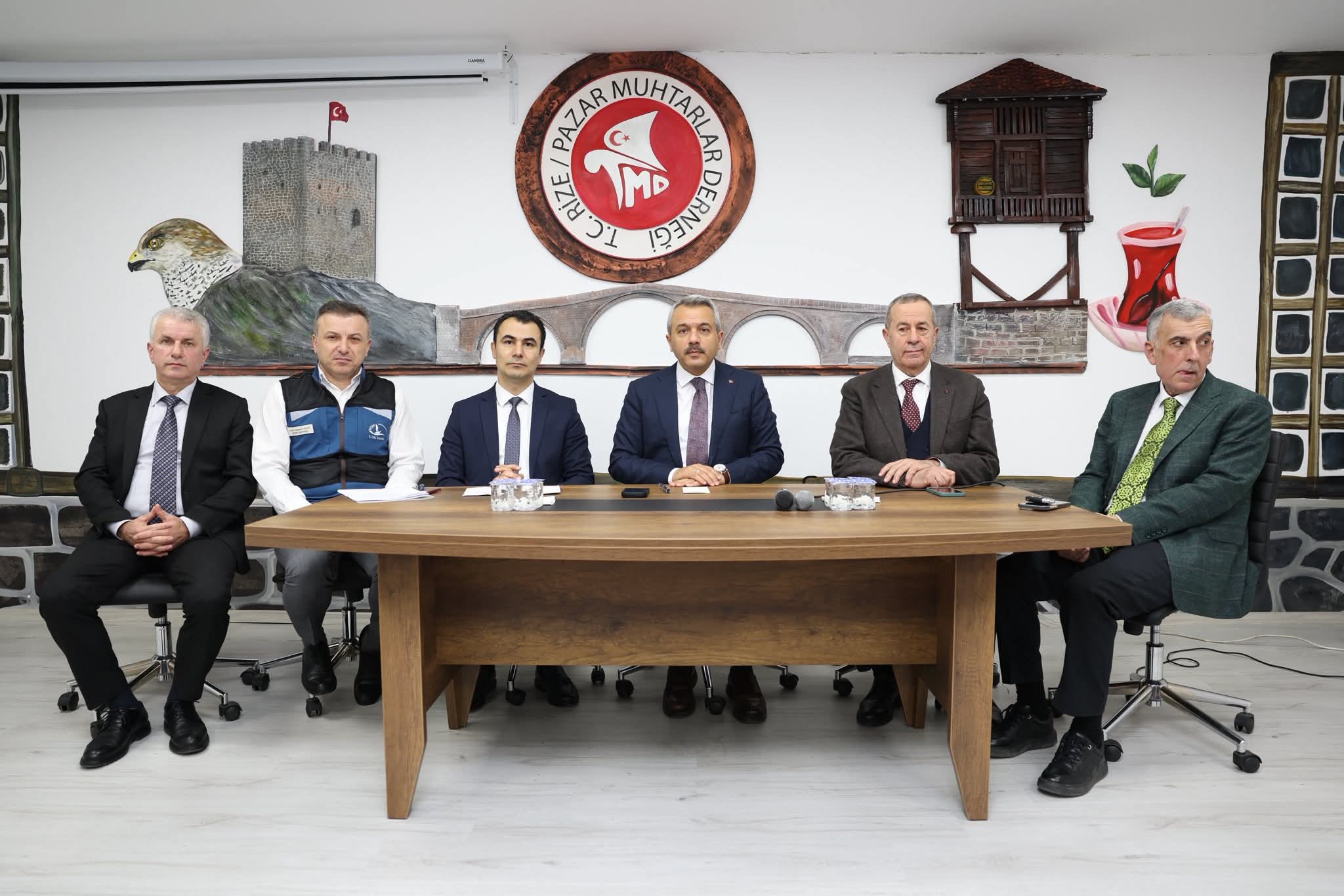 Pazar Muhtarlar Derneğinde köy ve mahalle muhtarlarıyla bir araya gelen Vali Baydaş, muhtarların sorun ve taleplerini dinledi.